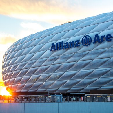 The Allianz Arena, the spectacular home stadium of FC Bayern Munich, is an architectural masterpiece that has been making soccer history since its opening in 2005. With a capacity of over 75,000 spectators, it provides an impressive backdrop for the club's home games. The stadium's futuristic facade, which can be illuminated in the club's colors, is known far beyond Munich's borders and has become a landmark of the city and modern soccer. These and other FC Bayern facts make the Allianz Arena a place that is second to none in the world of soccer. On our FC Bayern Tour you have the opportunity to explore the stadium with its exclusive facilities and learn more about the stadium itself.
